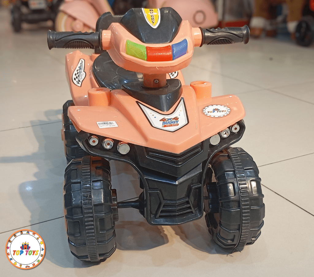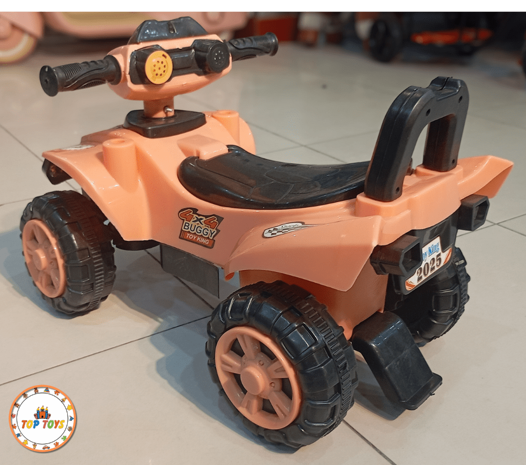 - Quad Bike Style with 4 Sturdy Wheels – stable ride for toddlers and young children.